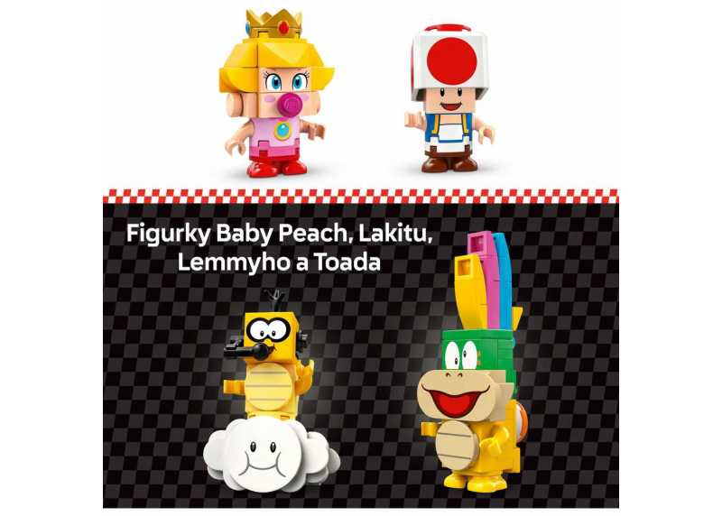 LEGO® Super Mario 72036 Mario Kart Baby Peach a sada Grand Prix přináší dětem napínavý svět závodů inspirovaný populární herní sérií Mario Kart. Stavebnice nabízí dynamickou závodní dráhu, ikonické postavy a interaktivní prvky pro kreativní hru. Díky 823 dílkům poskytuje zábavnou stavitelskou výzvu i dlouhé hodiny hraní. Ideální dárek pro fanoušky Super Mario, malé závodníky i děti, které milují kreativní stavebnice.