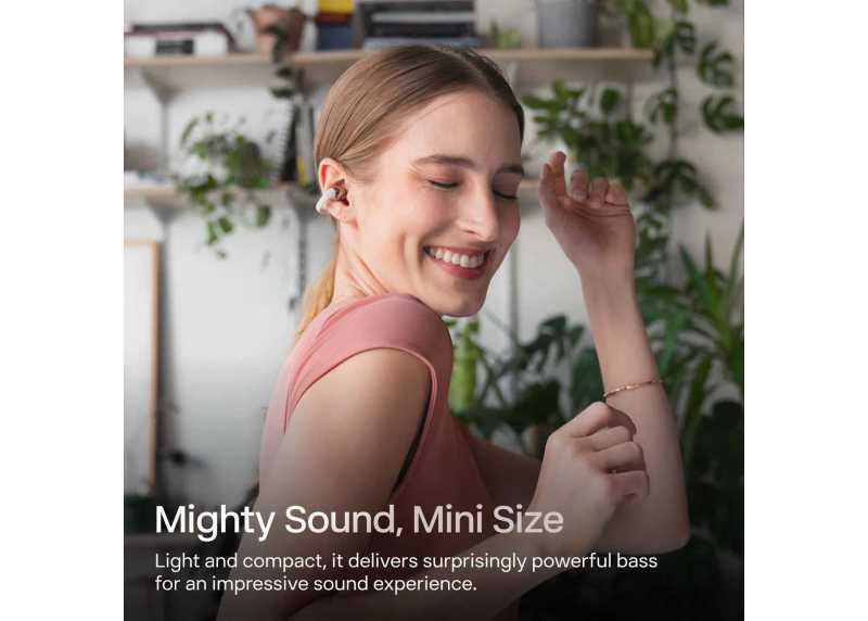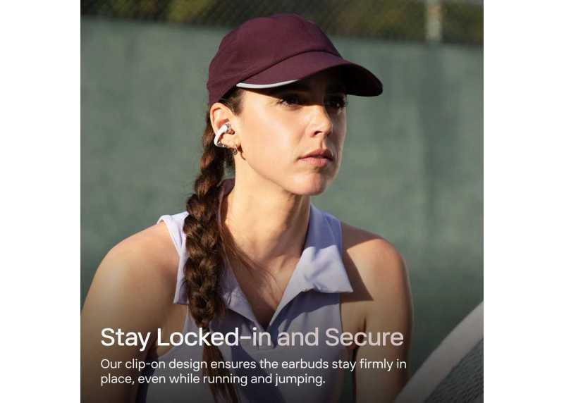 Lehká a odolná konstrukce – Každé sluchátko váží pouhých 6,5 g a je tvořeno kombinací pružné nikl-titanové slitiny a měkkého silikonového povrchu, který zajišťuje jisté, ale nevtíravé držení. Sluchátka prošla více než 5 000 testy ohybnosti a bez problémů zvládají každodenní manipulaci. Ergonomické uchycení se přizpůsobí tvaru ucha a zůstává pohodlné i po mnohahodinovém nošení. Otevřený design neucpává zvukovod, a tak zůstává poslech přirozený i po celý pracovní den. Jsou vhodná i při nošení brýlí, čepice nebo klobouků a dalších.