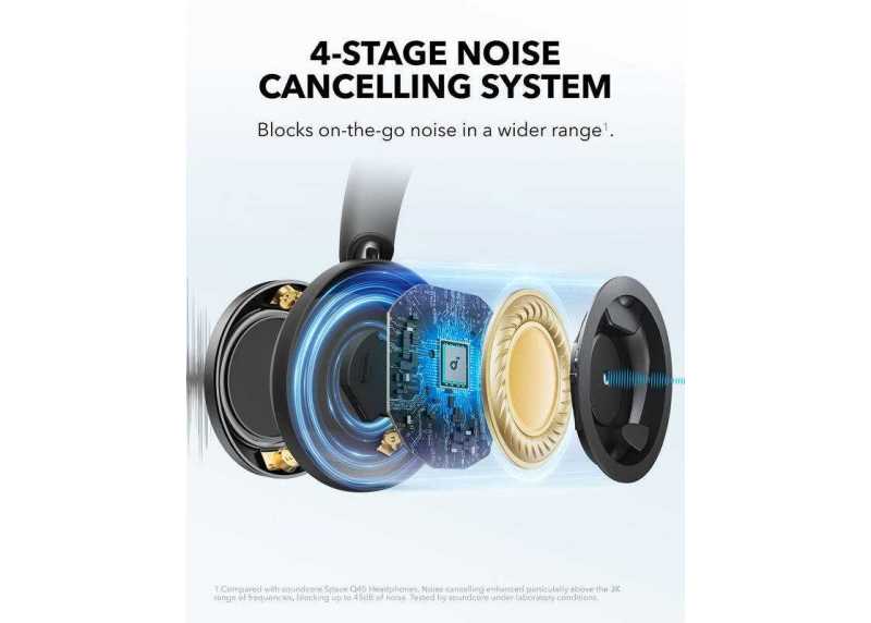 Bezdrátová sluchátka Anker Soundcore Space One Pro, maximální výdrž baterie 60 h, aktivní potlačení hluku, otevřená konstrukce, ANC, Easy Chat funkce, 4 mikrofony, Bluetooth 5.3.