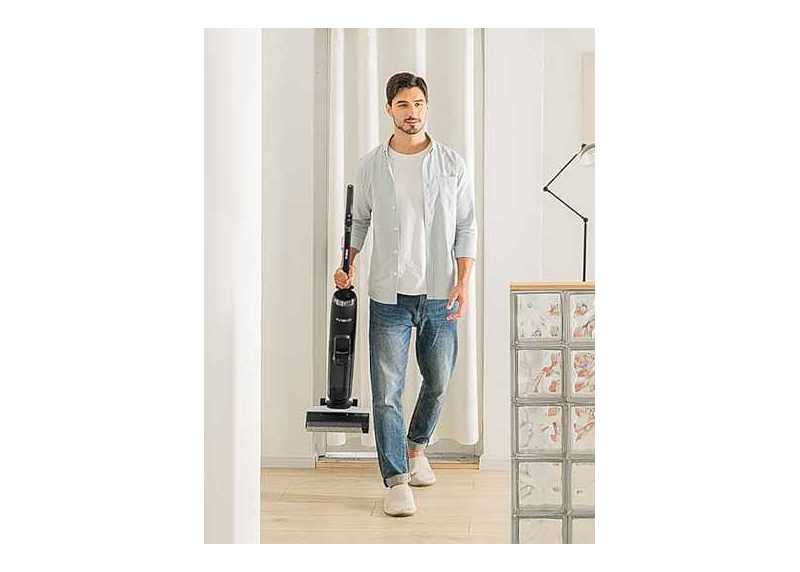 Vysavač disponuje dvěma velkými zásobníky. Jeden je na čistou vodu a má objem 0,8 l, druhý je na odpadní vodu a nečistoty a vejde se do něj 0,72 l. Nebudete tak muset často doplňovat, ani vyprazdňovat. Mopovací válec se postará o efektivní vytření všech odolných i zaslých skvrn a sami se vyčistí po umístění vysavače do dokovací stanice.