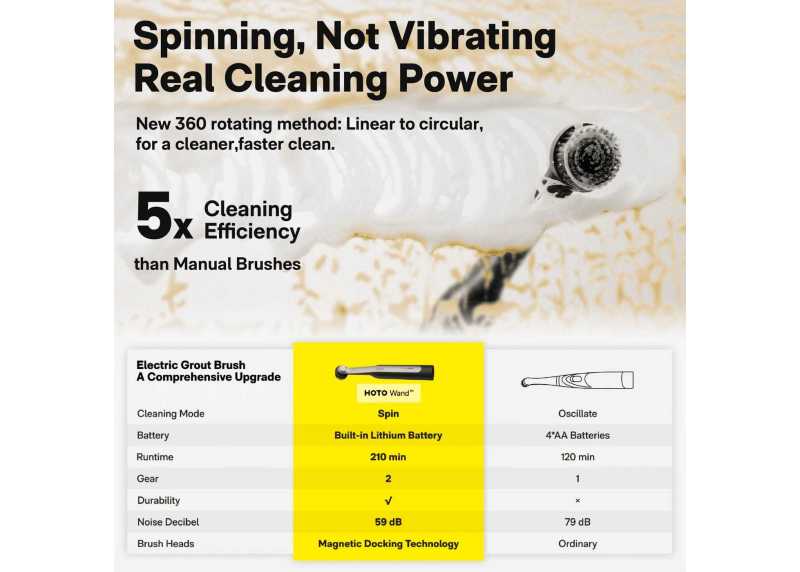 Kouzelná hůlka nebo čisticí kartáč? Je to vlastně jedno, protože obojí vám zajistí dokonalou čistotu. Elektrický kartáč s výměnnými nástavci je ideálním nástrojem k čištění spár, lišt, dřezů, úzkých prostor, mezer, nádobí i menších ploch. Rotace až 250 otáčkami za minutu je 5 krát efektivnější než ruční drhnutí a je podpořena mikrovibracemi, které napomáhají snadnějšímu úklidu. S kartáčem můžete uklízet až 210 min na jedno nabití. Díky voděodolnosti IPX7 jej můžete pužívat i pod tekoucí vodou a bez obav jej čistit pod vodou. Nástavce se přicvakávají pomocí magnetu, takže je jejich výměna na různé povrchy opravdu rychlá. Kartáč přesně padne ruky a dostane se do všech mezer a spár. Dvě rychlosti otáček si poradí s veškerou špínou.