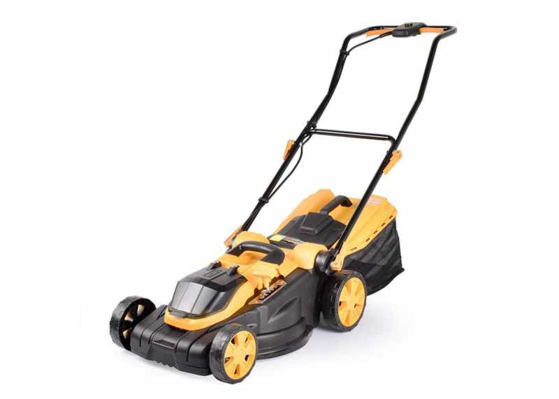 Akumulátorová sekačka, výška sekání 25 - 70 mm, šířka záběru 38 mm, sklopná řídítka, akumulátor, nabíječka.