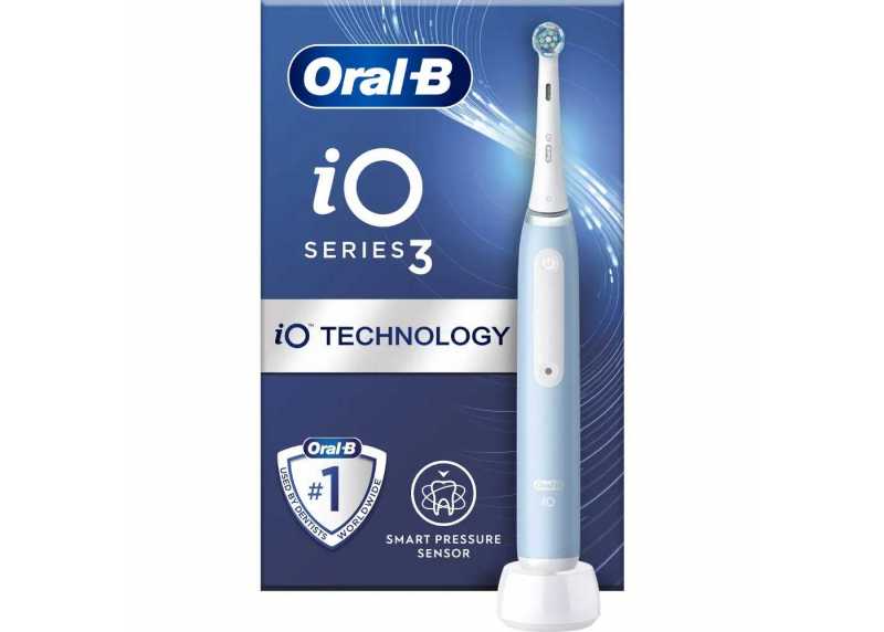 Elektrický rotační zubní kartáček Oral-B iO 3, Ice blue, 3 režimy čištění, tlakový senzor, časovač, indikátor baterie, 1 náhradní hlavice.