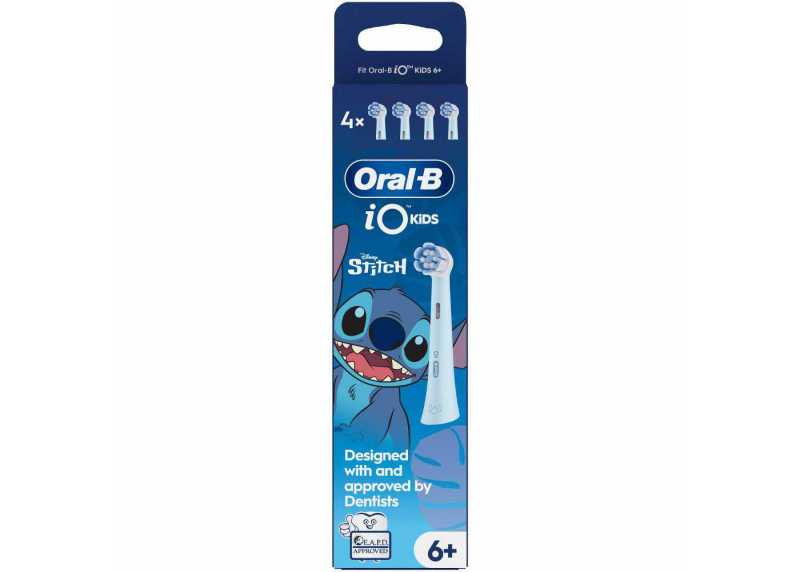 Balení 4ks náhradních hlavic pro elektrické zubní kartáčky Oral-B iO Kids 6+. S motivem - Disney Stitch. Vhodná pro děti od 6 let. Měkké štětinky. Šetrná ke kývajícím se zubům a citlivým dásním.