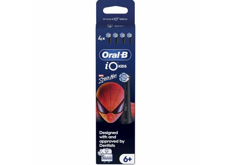 Balení 4ks náhradních hlavic pro elektrické zubní kartáčky Oral-B iO Kids 6+. S motivem - Marvel Spiderman. Vhodná pro děti od 6 let. Měkké štětinky. Šetrná ke kývajícím se zubům a citlivým dásním.